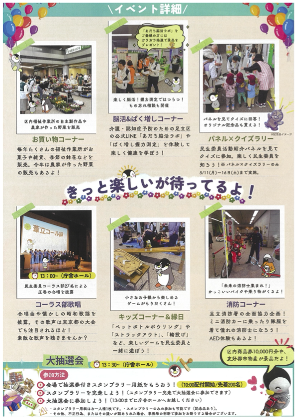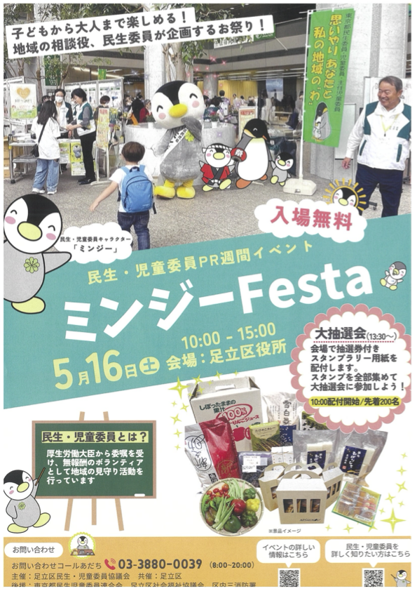 このたび、民生・児童委員PR週間の取り組みとして、足立区役所にて「ミンジーFesta」が開催されます。多世代が交流できる場を企画・運営し、地域福祉の向上に貢献するイベントです。